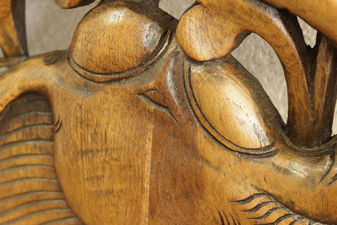 東南アジアで無垢のチーク材を切り抜き、彫刻を施した非常に珍しく手の込んだ作品です。