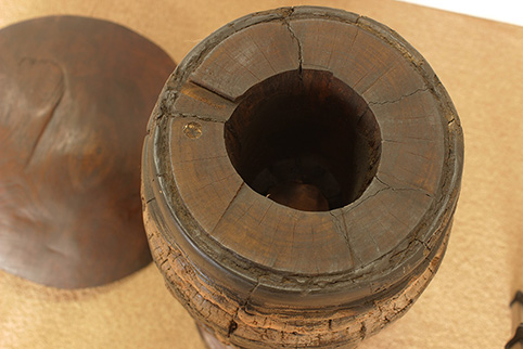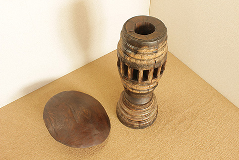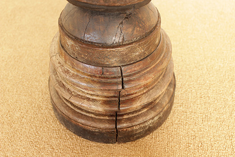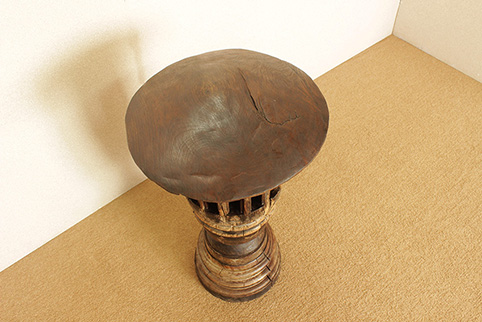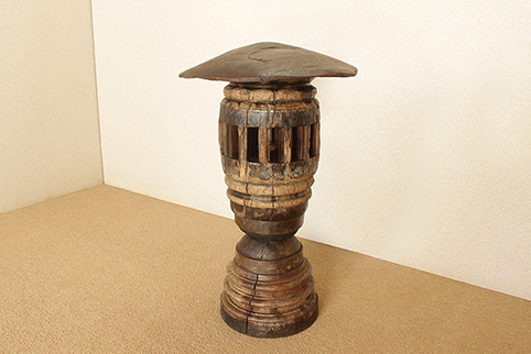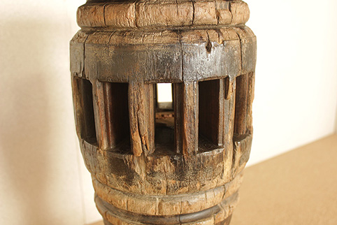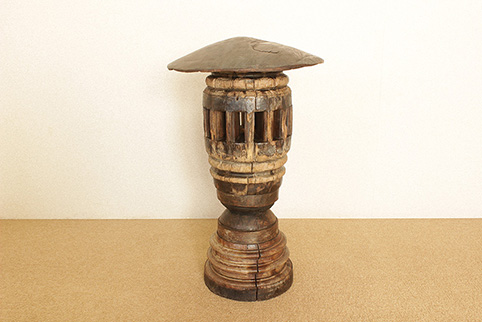 東南アジアで50年〜150年程前に牛車に利用されていた車軸部に、チーク一枚板の木傘をのせた車輪飾りです。