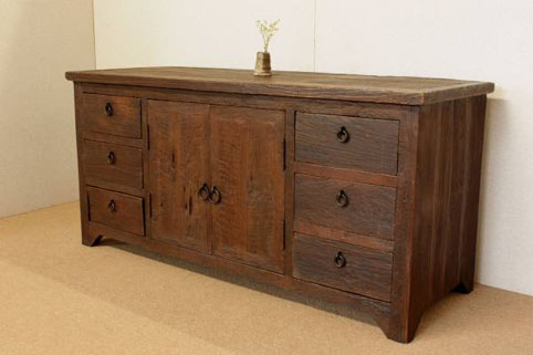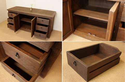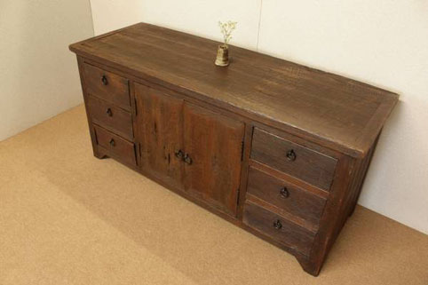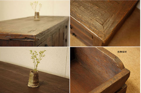 『癒し』チーク自然杢★アジア★アンティーク家具★横長チェスト