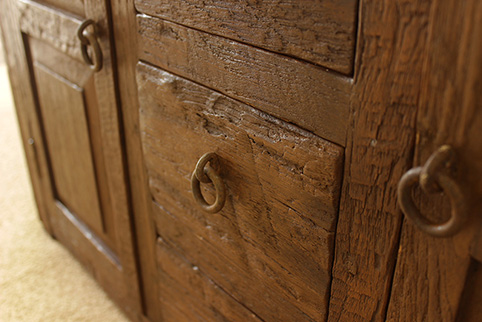 ★商品としては古い物ではございませんが、チークの古材を再利用して作られた、総無垢材の貴重な品物です。