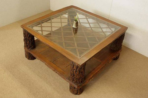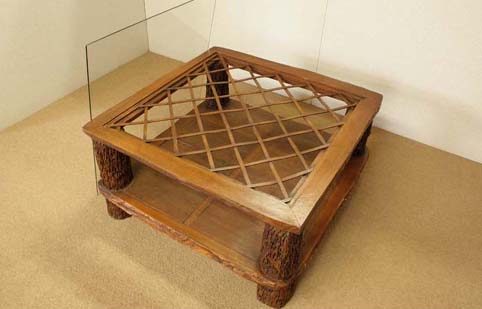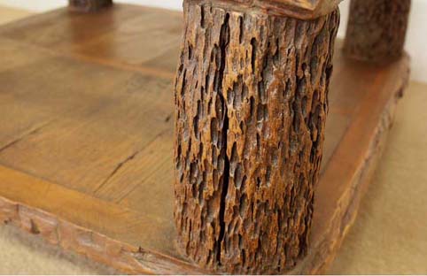 このテーブルは上記古式家具をモチーフに製作された作品です(材料はチークの古材を使用しております)