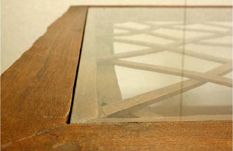 ●ガラスは天板を囲むまく板に隙間無くピタリと納まります。 (取り外しも楽に行えます)