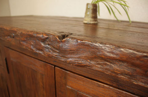 東南アジアで使用されていたアンティーク家具です。年代は不明ですが、木の杢が非常に美しく浮き出ております。全体的なつくりはしっかりしており、がたつきはございません。 自然美溢れる木の杢を眺め、触れ、心を癒していただければと思います。