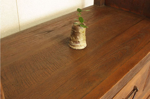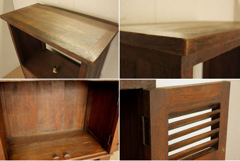 東南アジアで使用されていたアンティーク家具です年代は不明ですが、木の杢が非常に美しく浮き出ております。全体的なつくりはしっかりしており、がたつきはございません。 自然美溢れる木の杢を眺め、触れ、心を癒していただければと思います。
