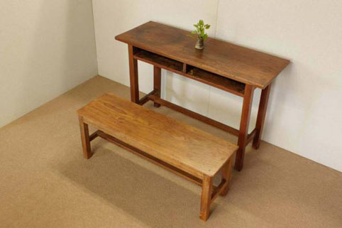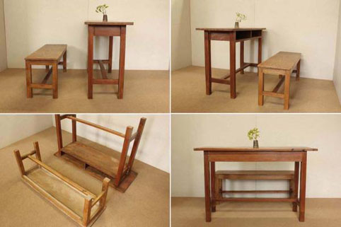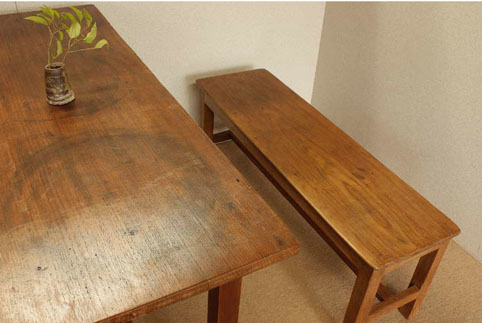 ★テーブルの天板、椅子の座面共に一枚板です。 どちらも重量はそれ程重くありませんので、配置を変えてお楽しみ下さい。