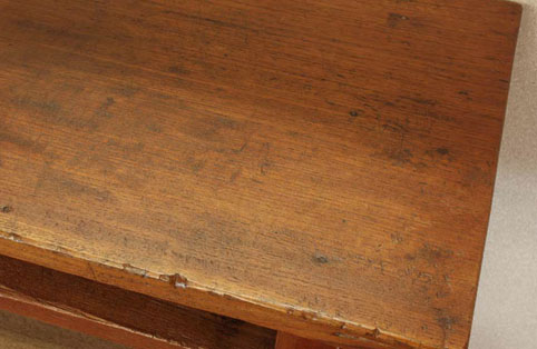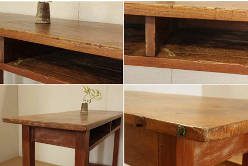 ★テーブルの天板の焦げ跡がとても印象的です。角の凹んだ凹凸など、時の流れを感じさせる、貴重なお品です。