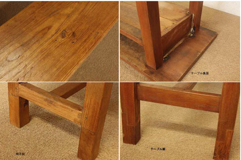 ▲テーブル椅子共に、高さを高くした跡がございます。 (キズ跡などから見ても、高さの調整後かなりの年数が経過している様です)
